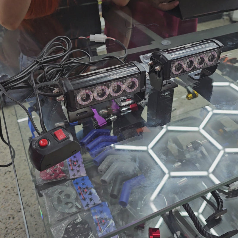Cada unidad está equipada con 4 LEDs de alta intensidad, proyectando un haz amplio y profundo ideal para carros, camionetas y vehículos que requieren ver —y ser vistos— en rutas oscuras, destapadas o de clima difícil.